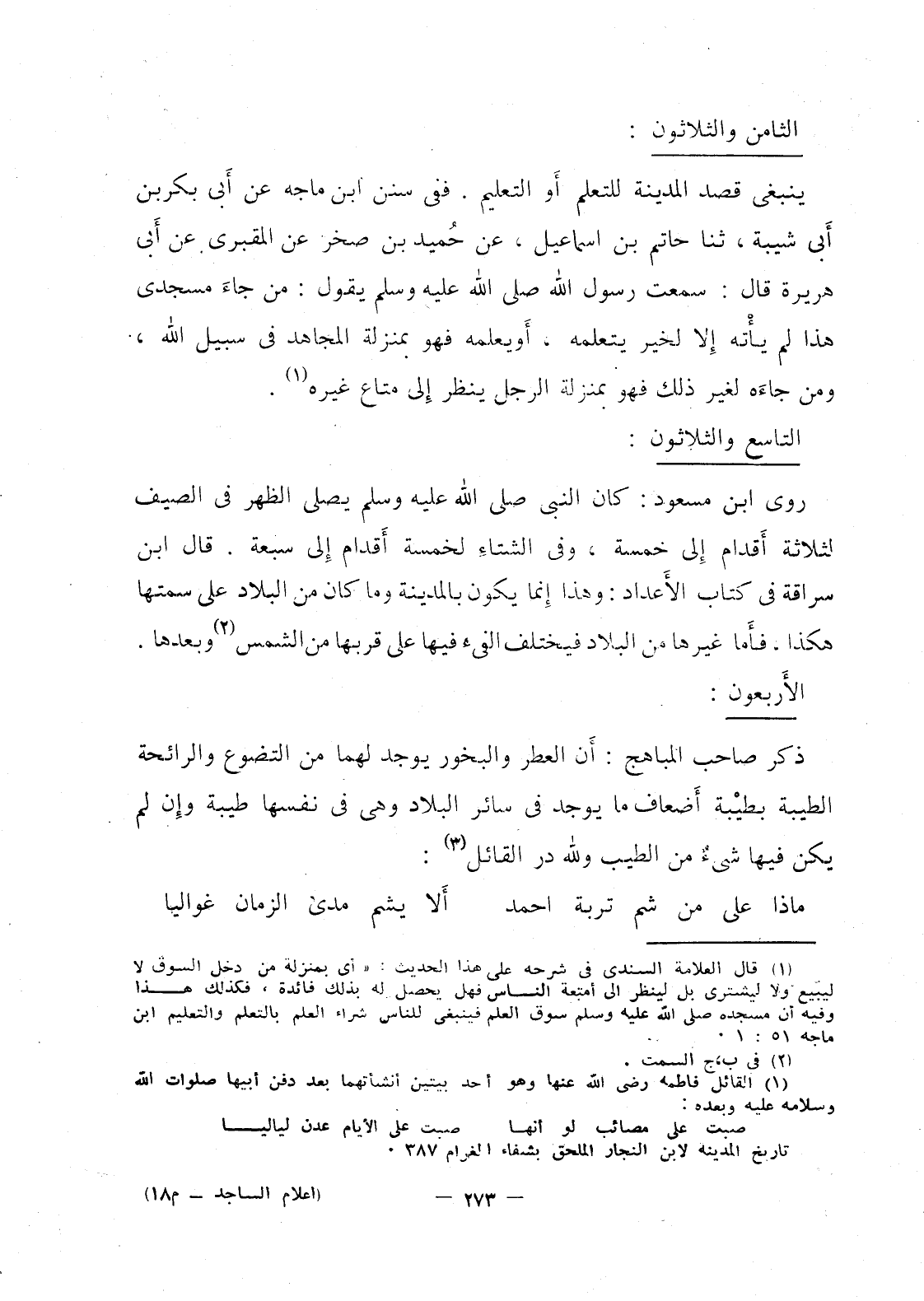 ينبغي قصد المدينة للتعلم أو التعليم. ففي سنن ابن ماجه عن أبي
