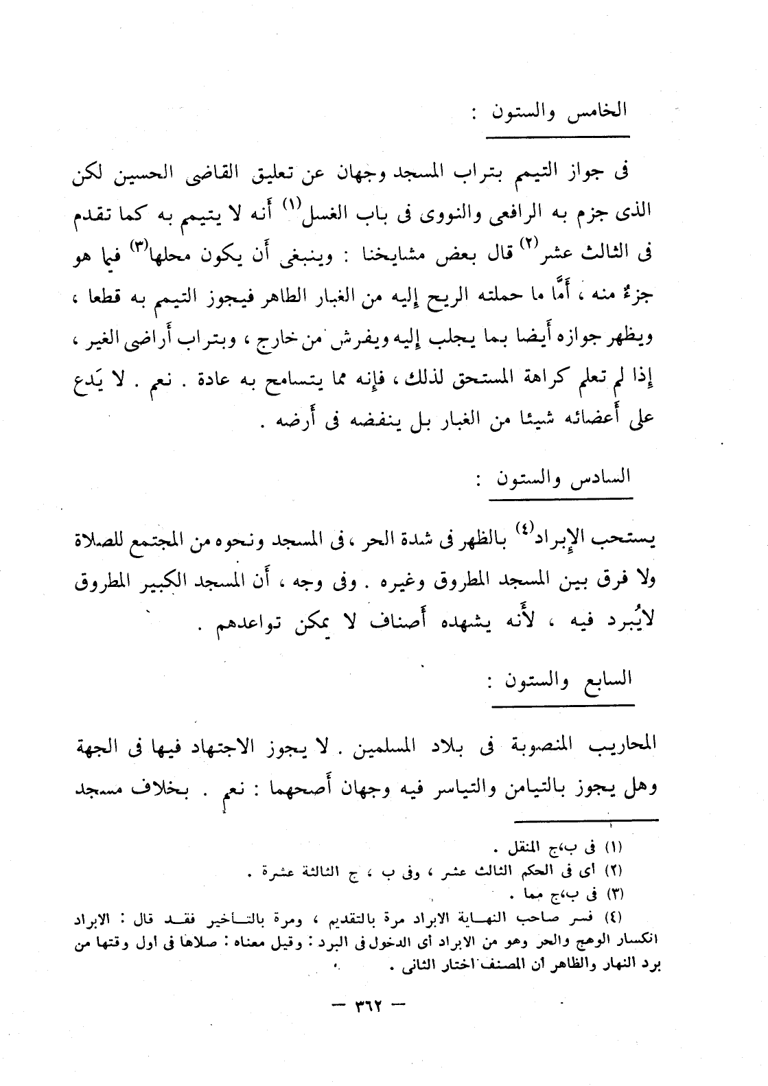 المحاريب المنصوبة في بلاد المسلمين، لا يجوز الاجتهاد فيها في الجهة وهل يجوز بالتيامن والتياسر فيه وجهان أصحهما: نعم، بخلاف مسجد
