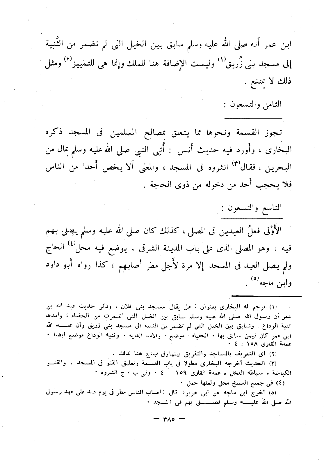 ابن عمر انه صلى الله عليه وسلم سابق بين الخيل التي لم تضمر من الثنية إلى مسجد بني زريق، وليست الإضافة هنا للملك وإنما هي للتمييز ومثل ذلك لا يمتنع.