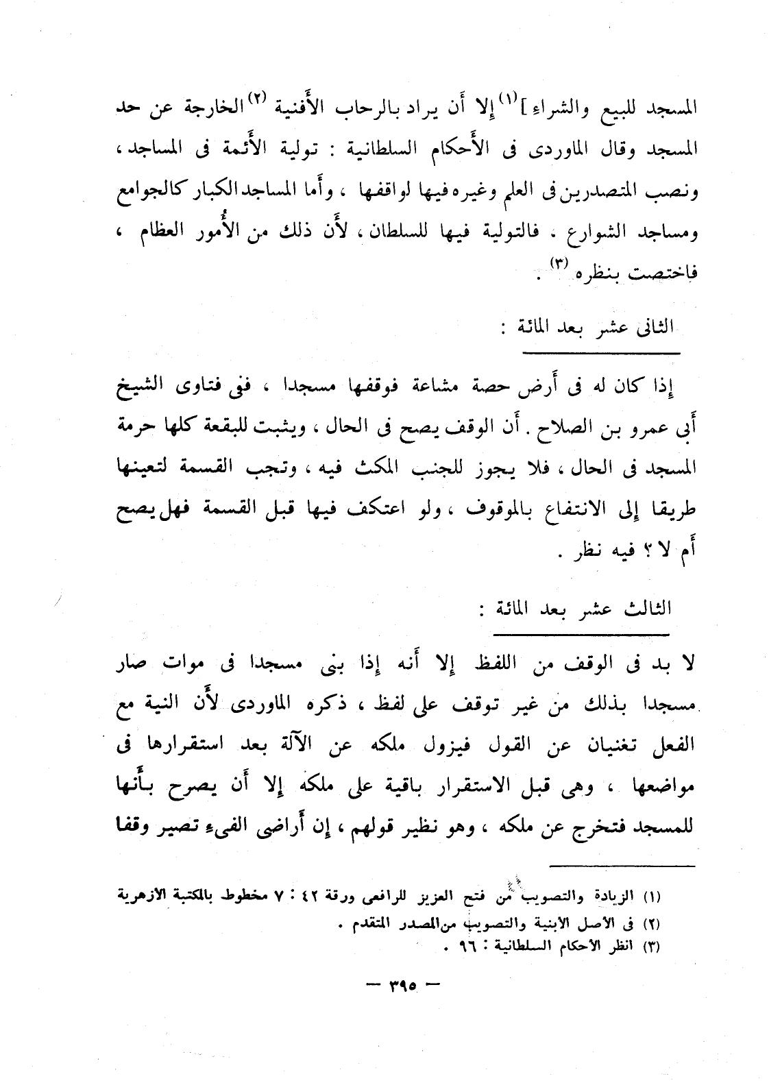 المسجد للبيع والشراء] إلا أن يراد بالرحاب الأفنية الخارجة عن حد المسجد وقال الماوردي في الأحكام السلطانية: تولية الأئمة في المساجد، ونصب المتصدرين في العلم وغيره فيها لواقفها، وأما المساجد الكبار كالجوامع ومساجد الشوارع، فالتولية فيها للسلطان لأن ذلك من الأمور العظام، فاختصت بنظره.