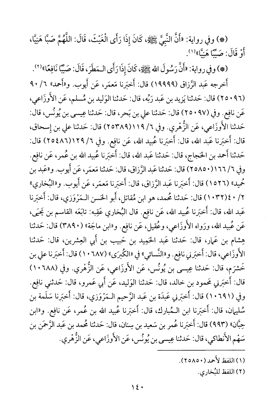 «أن النبي صَلى الله عَليه وسَلم كان إذا رأى الغيث، قال: اللهم صيبا سيبا هنيئا».