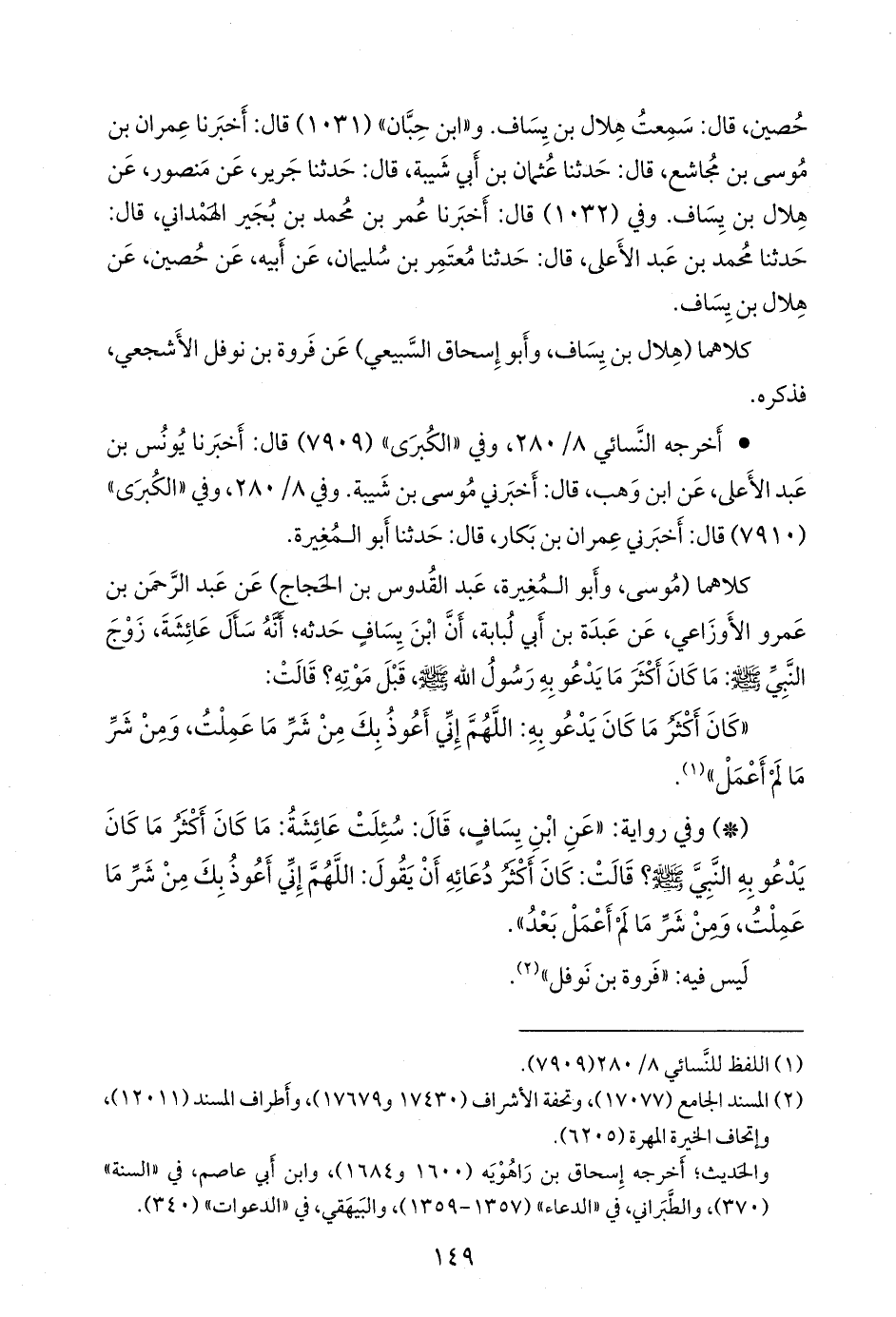 «أنه سأل عائشة زوج النبي صَلى الله عَليه وسَلم: ما كان أكثر ما يدعو به رسول الله صَلى الله عَليه وسَلم، قبل موته؟ قالت: كان أكثر ما كان يدعو به: اللهم إني أعوذ بك من شر ما عملت، ومن شر ما لم أعمل» (¬١).