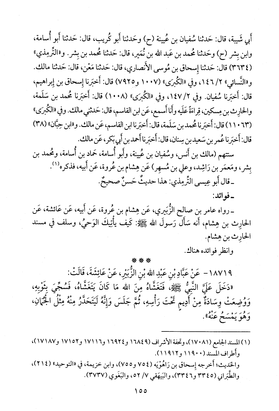 ١٨٧١٩ - عن عباد بن عبد الله بن الزبير، عن عائشة، قالت: