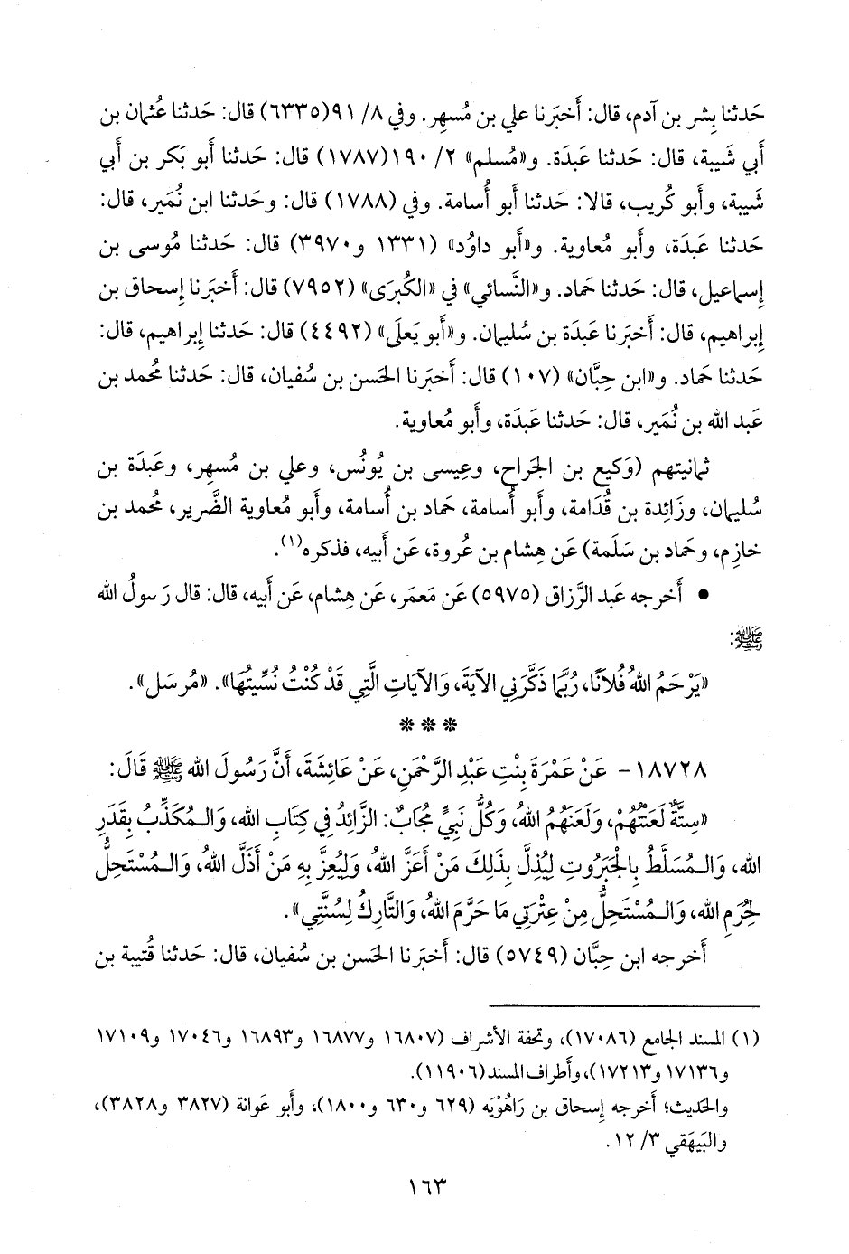 ١٨٧٢٨ - عن عَمرَة بنت عبد الرَّحمَن، عن عائشة، أن رسول الله صَلى الله عَليه وسَلم قال: