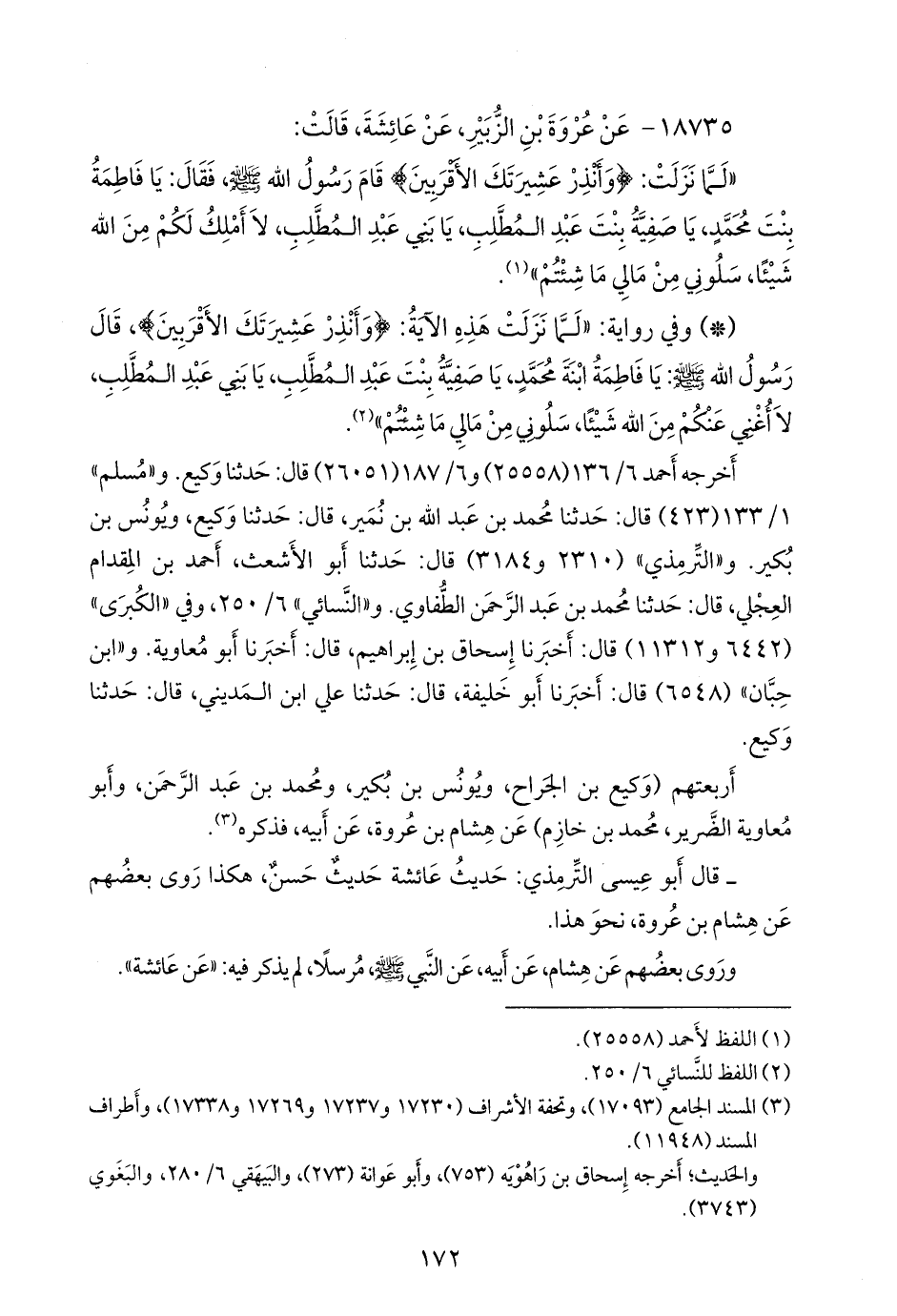 ١٨٧٣٥ - عن عروة بن الزبير، عن عائشة، قالت: