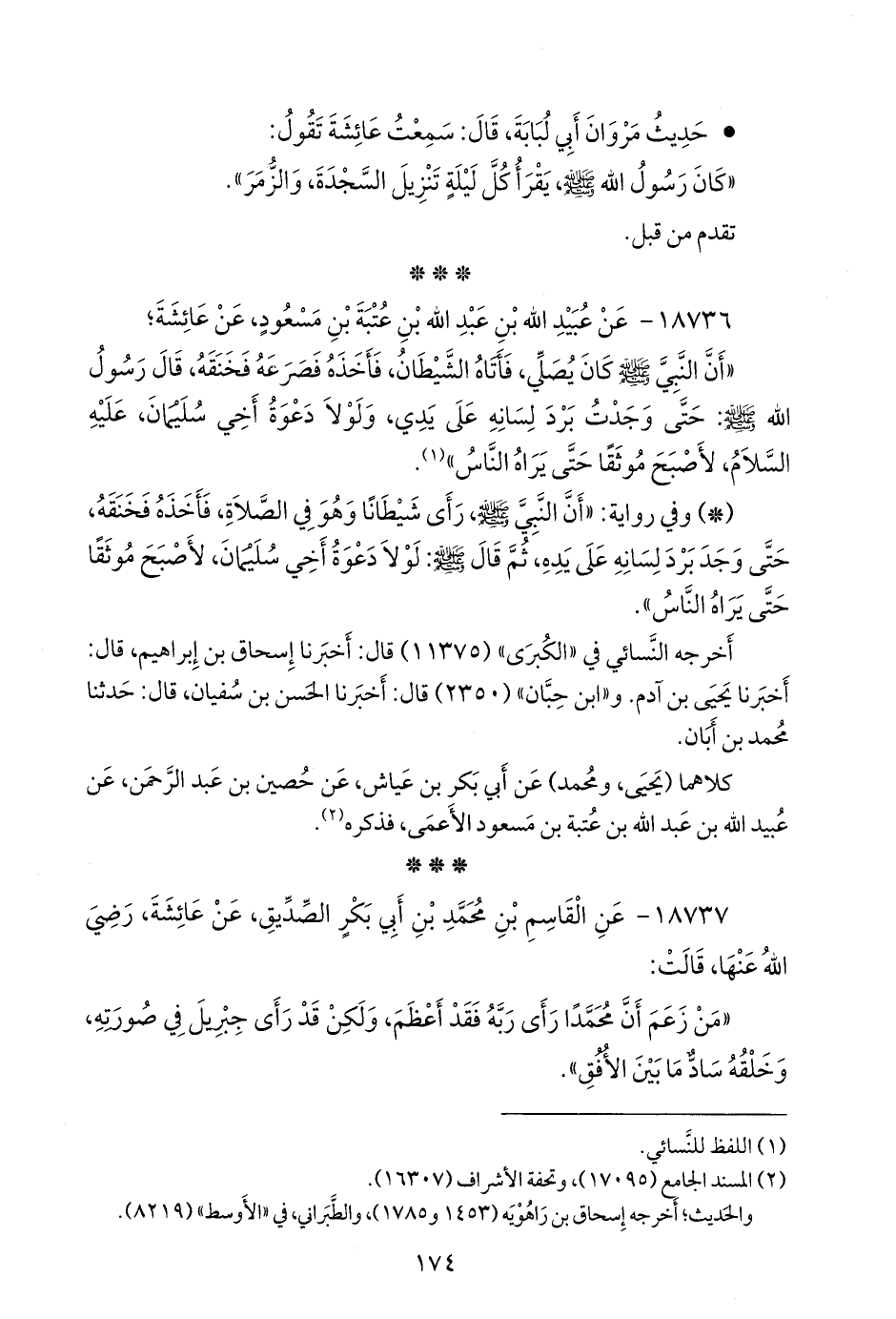 (¬٢) المسند الجامع (١٧٠٩٥)، وتحفة الأشراف (١٦٣٠٧).