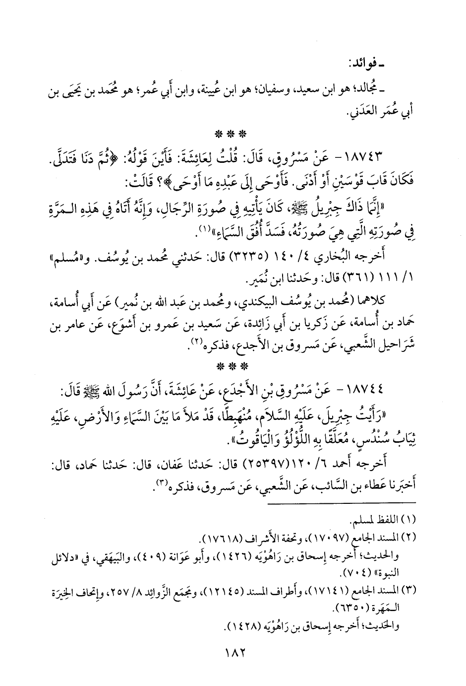 كلاهما (محمد بن يوسف البيكندي، ومحمد بن عبد الله بن نُمير) عن أبي أسامة حماد بن أسامة, عن زكريا بن أبي زائدة، عن سعيد بن عَمرو بن أشوع، عن عامر بن شراحيل الشعبي، عن مسروق بن الأجدع، فذكره (¬٢).