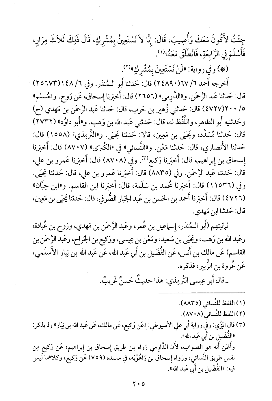 ثمانيتهم (أَبو المنذر، إسماعيل بن عمر، وعبد الرَّحمَن بن مهدي، وروح بن عبادة، وعبد الله بن وهب، ويحيى بن سعيد، ومَعن بن عيسى، ووكيع بن الجراح، وعبد الرَّحمَن بن القاسم) عن مالك بن أنس، عن الفضيل بن أبي عبد الله، عن عبد الله بن نيار الأسلمي، عن عروة بن الزبير، فذكره.