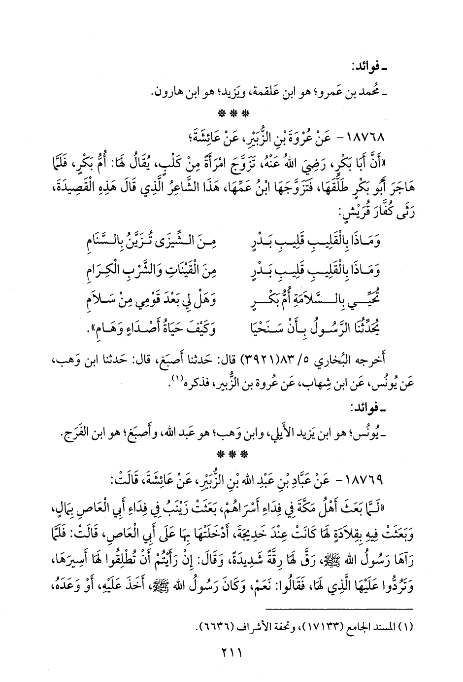 ١٨٧٦٨ - عن عروة بن الزبير، عن عائشة؛