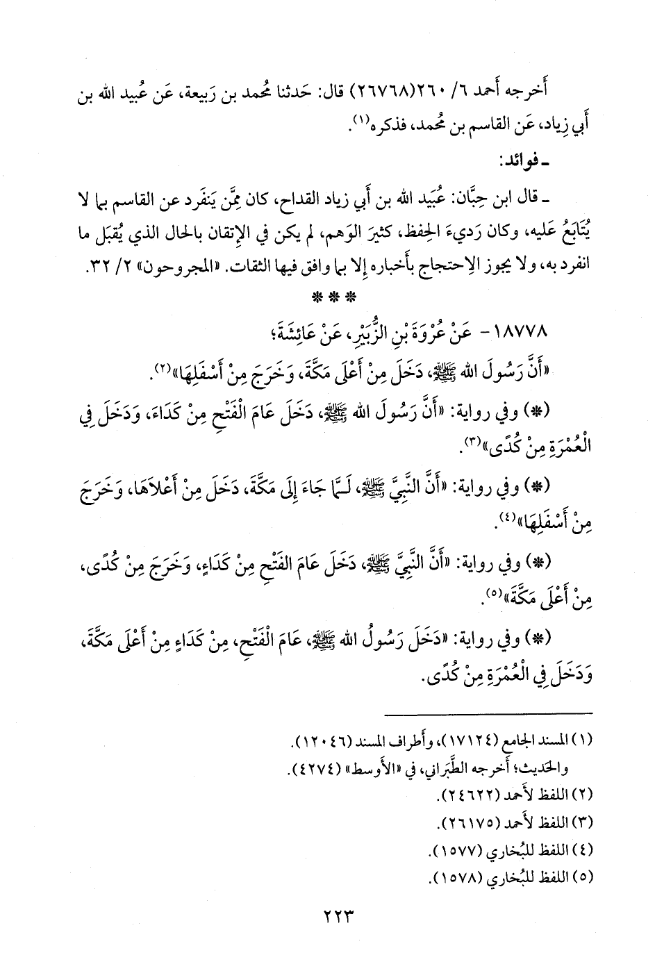 - وفي رواية: «دخل رسول الله صَلى الله عَليه وسَلم عام الفتح، من كداء من أعلى مكة، ودخل في العمرة من كدى.