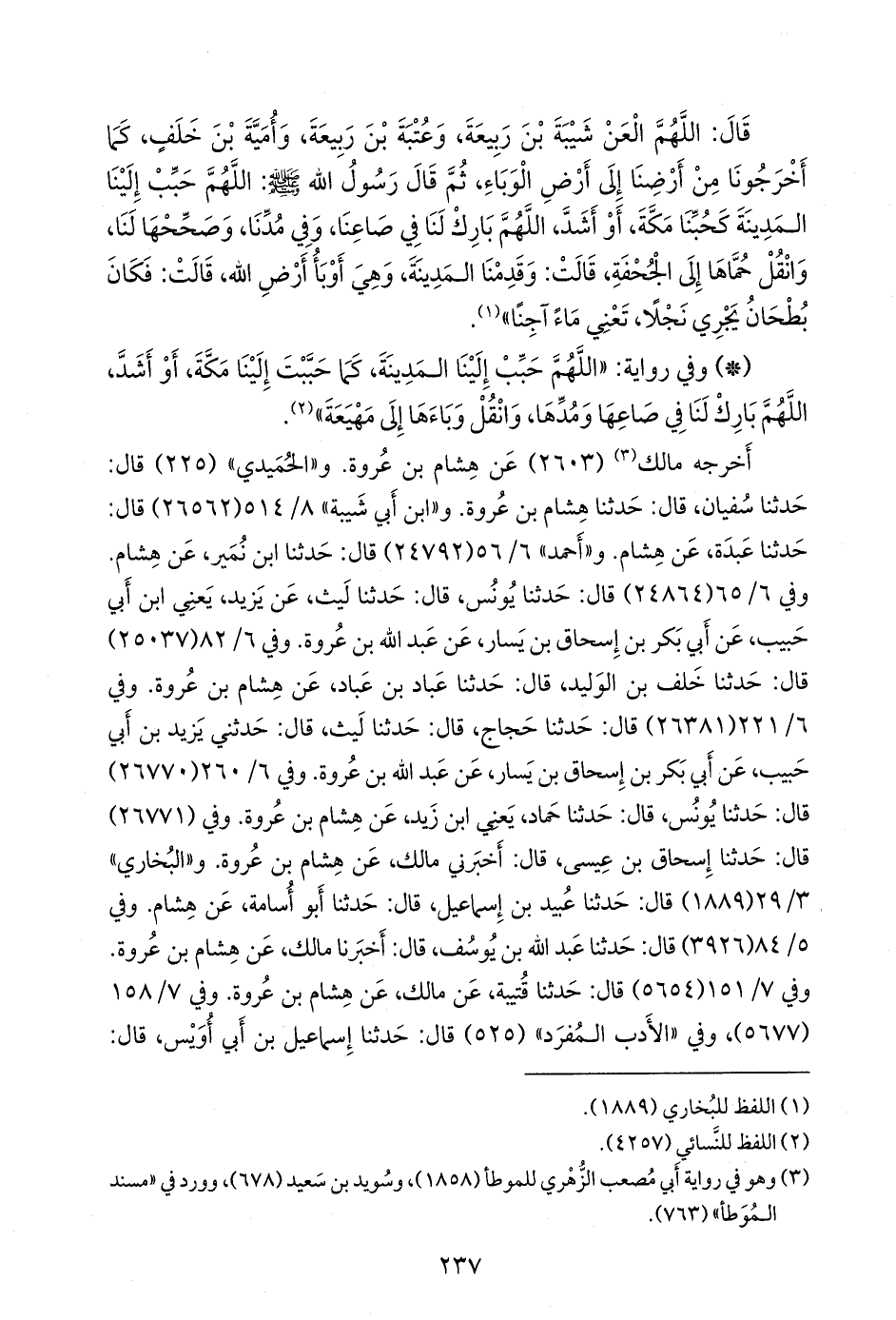 - وفي رواية: «اللهم حبب إلينا المدينة، كما حببت إلينا مكة، أو أشد، اللهم بارك لنا في صاعها ومدها، وانقل وباءها إلى مهيعة» (¬٢).