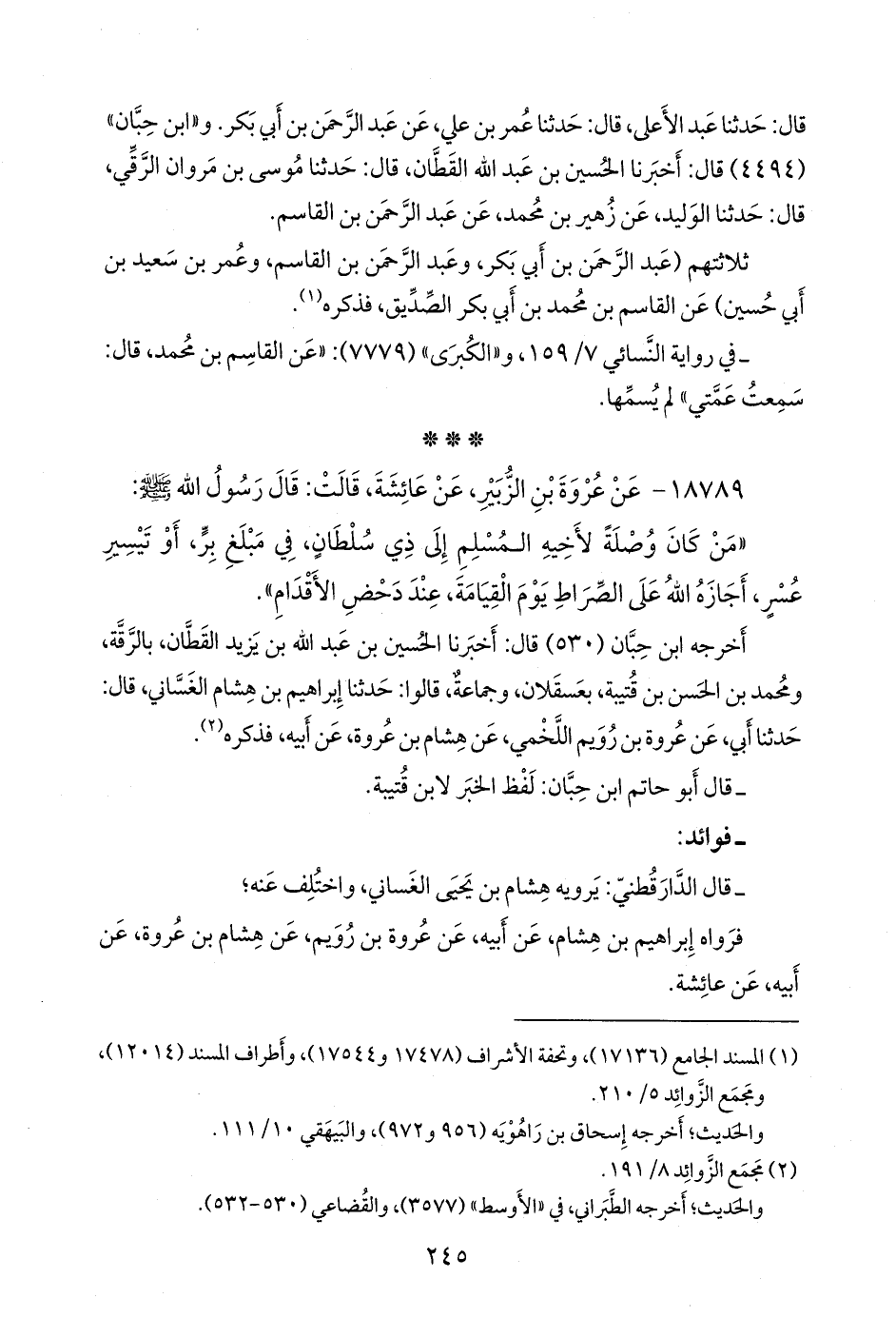 أخرجه ابن حبان (٥٣٠) قال: أخبرنا الحسين بن عبد الله بن يزيد القطان، بالرَّقَّة، ومحمد بن الحسن بن قتيبة، بعسقلان، وجماعة، قالوا: حدثنا إبراهيم بن هشام الغساني، قال: حدثنا أبي، عن عروة بن رويم اللخمي، عن هشام بن عروة، عن أبيه، فذكره (¬١).