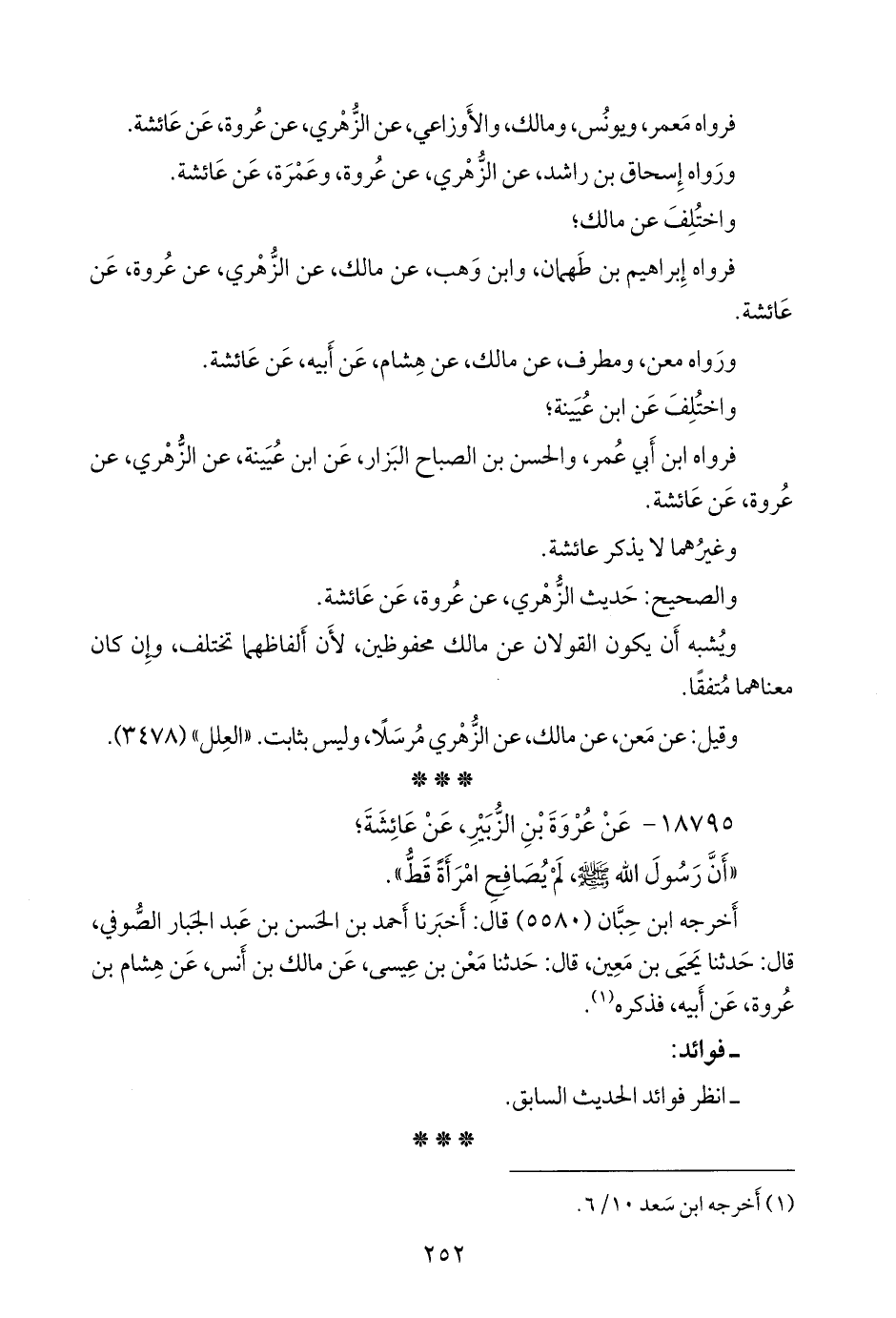 ١٨٧٩٥ - عن عروة بن الزبير، عن عائشة؛