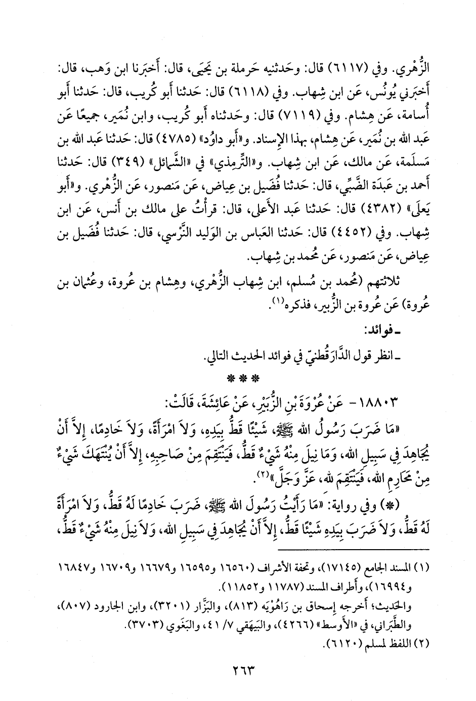 ١٨٨٠٣ - عن عروة بن الزبير، عن عائشة، قالت: