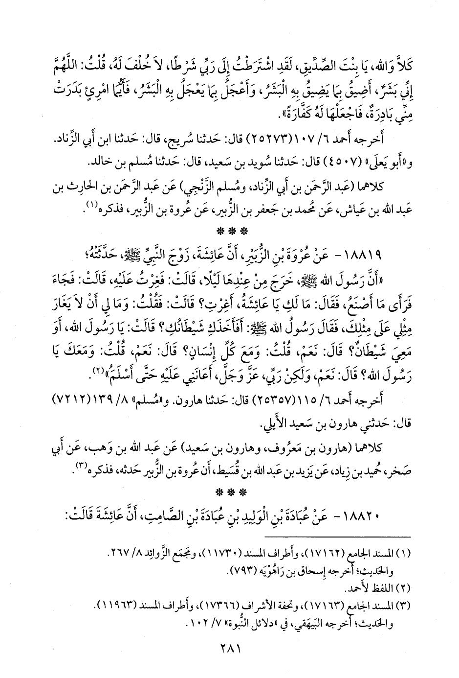 ١٨٨١٩ - عن عروة بن الزبير، أن عائشة، زوج النبي صَلى الله عَليه وسَلم حدثته؛
