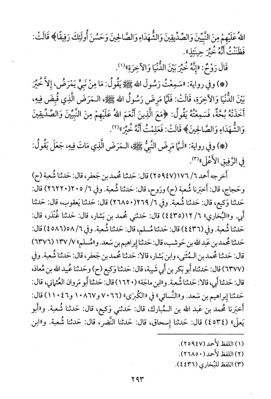 وفي ٦/ ٢٦٩ (٢٦٨٥٠) قال: حدثنا يعقوب، قال: حدثنا أبي. و «البخاري» ٦/ ١٢ (٤٤٣٥) قال: حدثني محمد بن بشار, قال: حدثنا غُندَر, قال: حدثنا شعبة. وفي (٤٤٣٦) قال: حدثنا مسلم, قال: حدثنا شعبة. وفي ٦/ ٥٨ (٤٥٨٦) قال: حدثنا محمد بن عبد الله بن حوشب، قال: حدثنا إبراهيم بن سعد. و «مسلم» ٧/ ١٣٧ (٦٣٧٦) قال: حدثنا محمد بن المثنى، وابن بشار، قالا: حدثنا محمد بن جعفر, قال: حدثنا شعبة. وفي (٦٣٧٧) قال: حدثناه أَبو بكر بن أبي شيبة، قال: حدثنا وكيع (ح) وحدثنا عُبيد الله بن معاذ, قال: حدثنا أبي، قالا: حدثنا شعبة. و «ابن ماجة» (١٦٢٠) قال: حدثنا أَبو مروان العثماني, قال: حدثنا إبراهيم بن سعد. و «النَّسَائي» في «الكبرى» (٧٠٦٦ و ١٠٨٦٧ و ١١٠٤٦) قال: أخبرنا محمد بن عبد الله بن المبارك، قال: حدثني وكيع، قال: حدثنا شعبة. و «أَبو يَعلى» (٤٥٣٤) قال: حدثنا إسحاق، قال: حدثنا النضر، قال: حدثنا شعبة. و «ابن