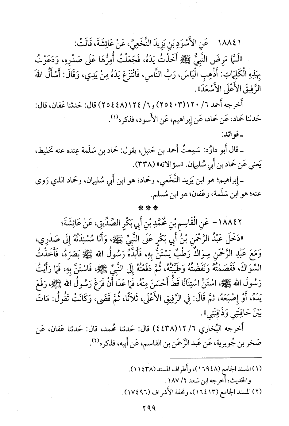 ١٨٨٤٢ - عن القاسم بن محمد بن أَبي بكر الصِّدِّيق، عن عائشة؛