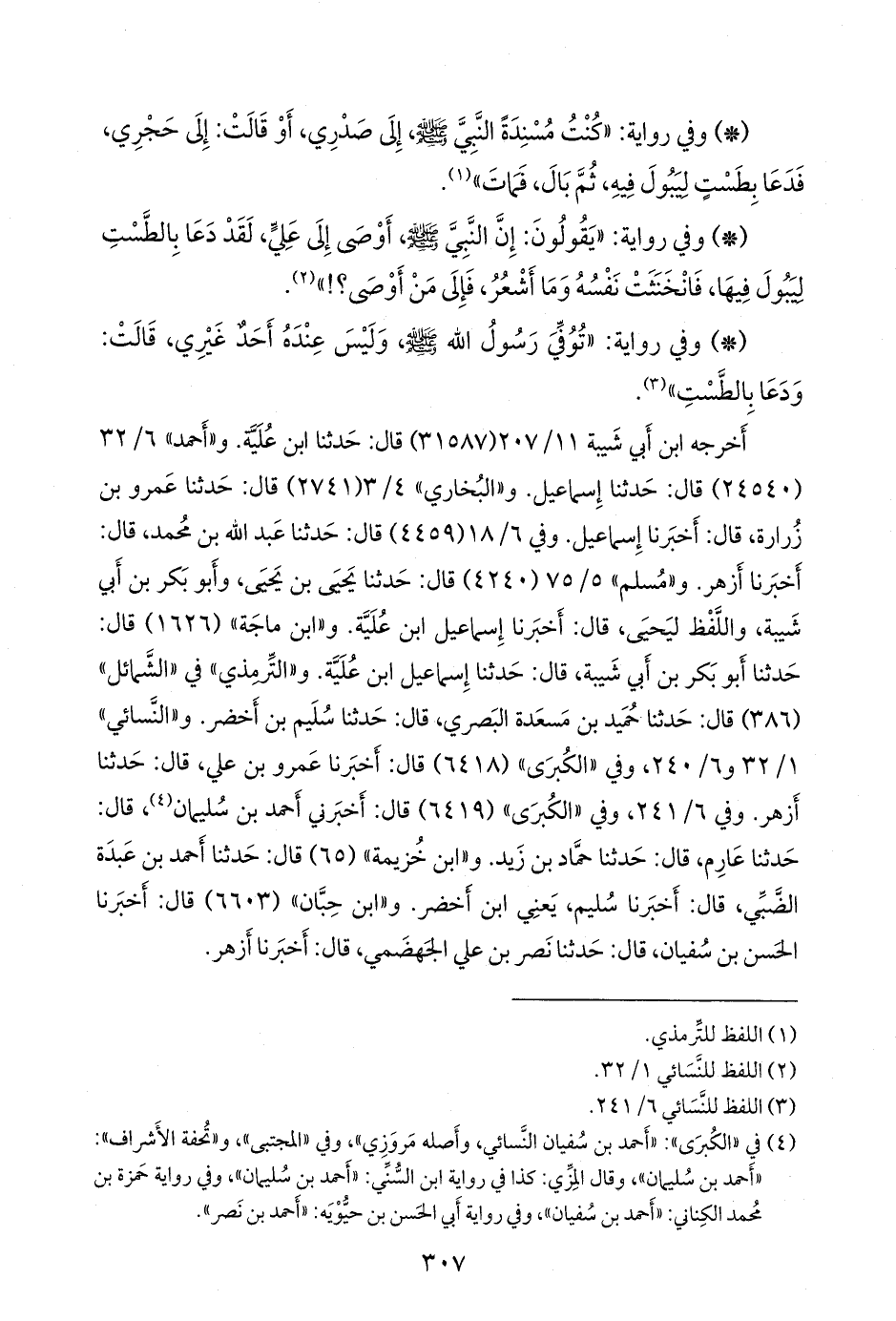 أخرجه ابن أبي شيبة (٣١٥٨٧) قال: حدثنا ابن عُلَية. و «أحمد» ٦/ ٣٢ (٢٤٥٤٠) قال: حدثنا إسماعيل. و «البخاري» ٤/ ٣ (٢٧٤١) قال: حدثنا عَمرو بن زُرارة، قال: أخبرنا إسماعيل. وفي ٦/ ١٨ (٤٤٥٩) قال: حدثنا عبد الله بن محمد، قال: أخبرنا أزهر. و «مسلم» ٥/ ٧٥ (٤٢٤٠) قال: حدثنا يحيى بن يحيى، وأَبو بكر بن أبي شيبة، واللفظ ليحيى، قال: أخبرنا إسماعيل ابن عُلَية. و «ابن ماجة» (١٦٢٦) قال: حدثنا أَبو بكر بن أبي شيبة, قال: حدثنا إسماعيل ابن عُلَية. و «التِّرمِذي» في «الشمائل» (٣٨٦) قال: حدثنا حميد بن مَسعَدة البصري، قال: حدثنا سليم بن أخضر. و «النَّسَائي» ١/ ٣٢ و ٦/ ٢٤٠، وفي «الكبرى» (٦٤١٨) قال: أخبرنا عَمرو بن علي، قال: حدثنا أزهر. وفي ٦/ ٢٤١، وفي «الكبرى» (٦٤١٩) قال: أخبرني أحمد بن سليمان (¬١)، قال: حدثنا عارم، قال: حدثنا حماد بن زيد. و «ابن خزيمة» (٦٥) قال: حدثنا أحمد بن عَبدة الضبي، قال: أخبرنا سليم، يعني ابن أخضر. و «ابن حِبَّان» (٦٦٠٣) قال: أخبرنا الحسن بن سفيان، قال: حدثنا نصر بن علي الجهضمي، قال: أخبرنا أزهر.