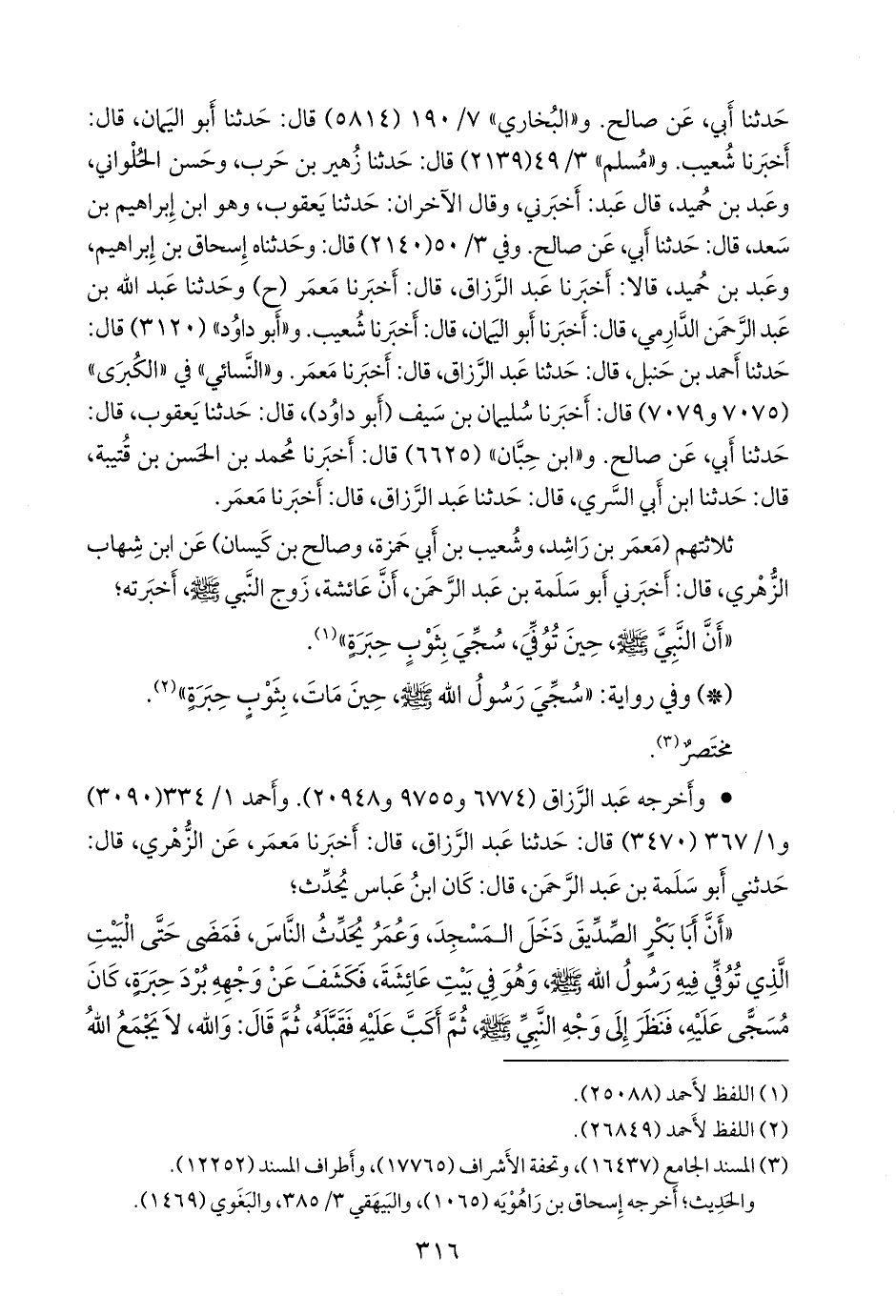 و «أَبو داود» (٣١٢٠) قال: حدثنا أحمد بن حنبل, قال: حدثنا عبد الرزاق, قال: أخبرنا معمر. و «النَّسَائي» في «الكبرى» (٧٠٧٥ و ٧٠٧٩) قال: أخبرنا سليمان بن سيف (أَبو داود)، قال: حدثنا يعقوب، قال: حدثنا أبي، عن صالح. و «ابن حِبَّان» (٦٦٢٥) قال: أخبرنا محمد بن الحسن بن قتيبة، قال: حدثنا ابن أبي السري، قال: حدثنا عبد الرزاق، قال: أخبرنا مَعمَر.