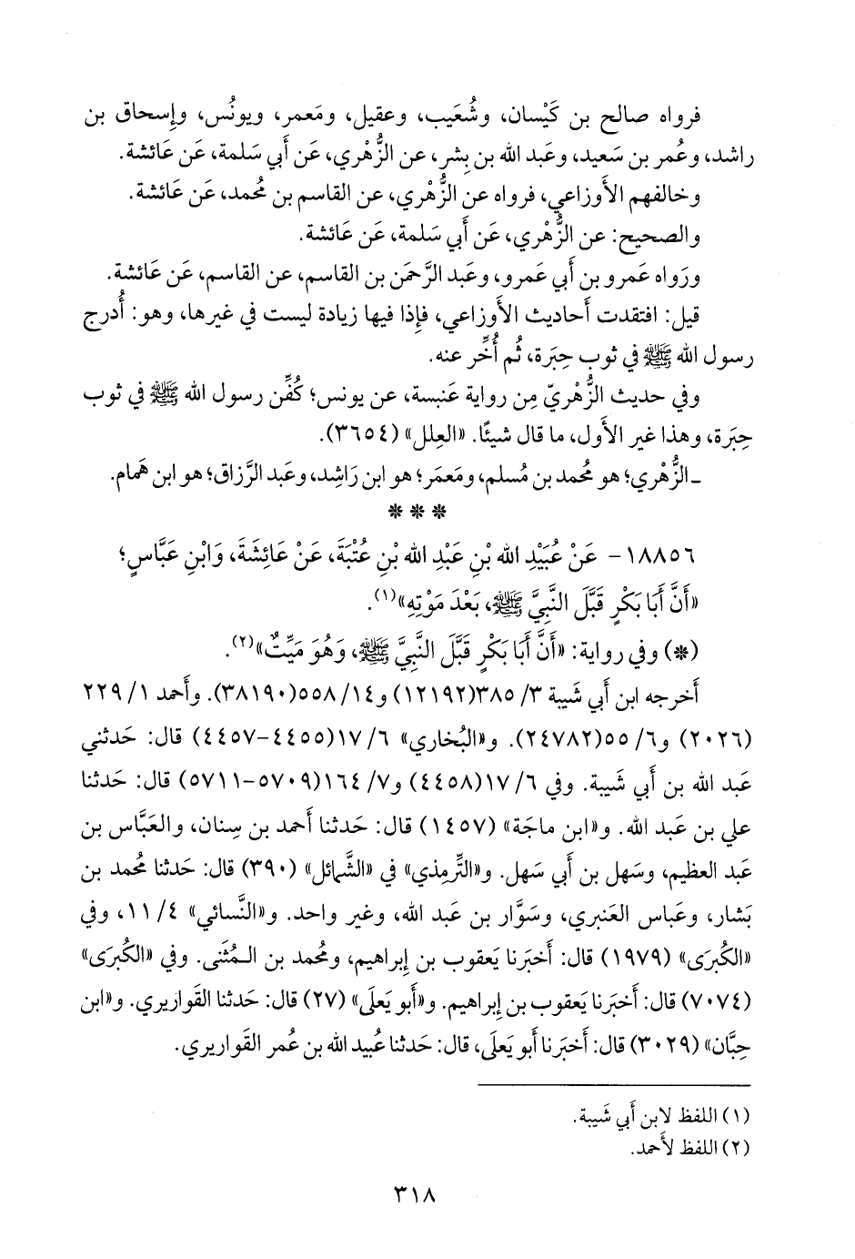 ١٨٨٥٦ - عن عُبيد الله بن عبد الله بن عُتبة، عن عائشة، وابن عباس؛