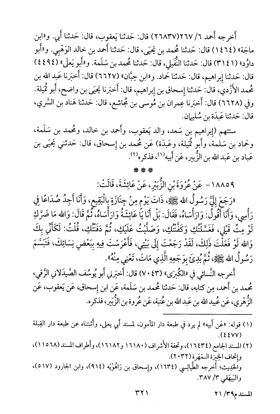 ١٨٨٥٩ - عن عروة بن الزبير، عن عائشة، قالت: