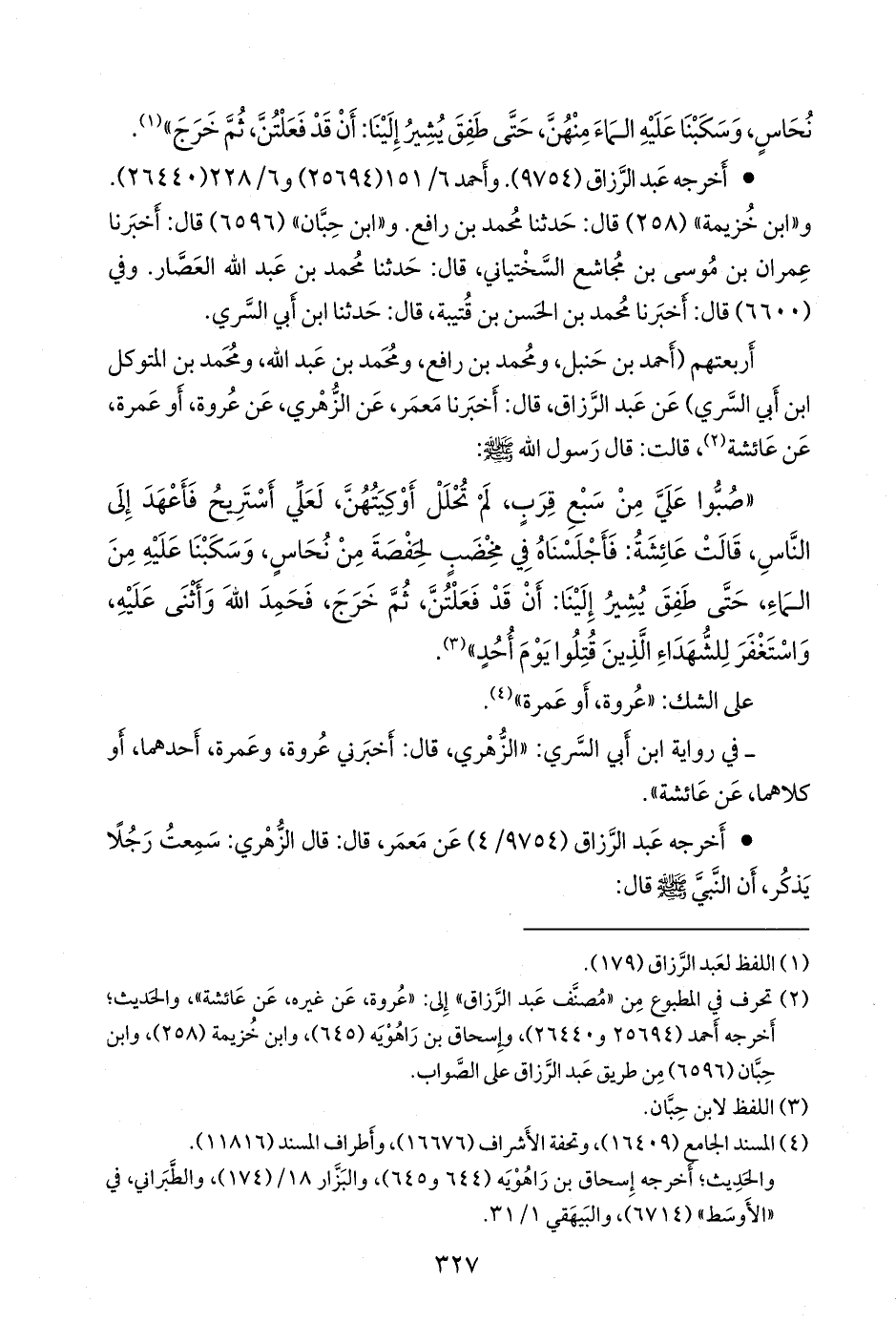 - في رواية ابن أبي السري: «الزُّهْري، قال: أخبرني عروة، وعمرة، أحدهما، أو كلاهما، عن عائشة».