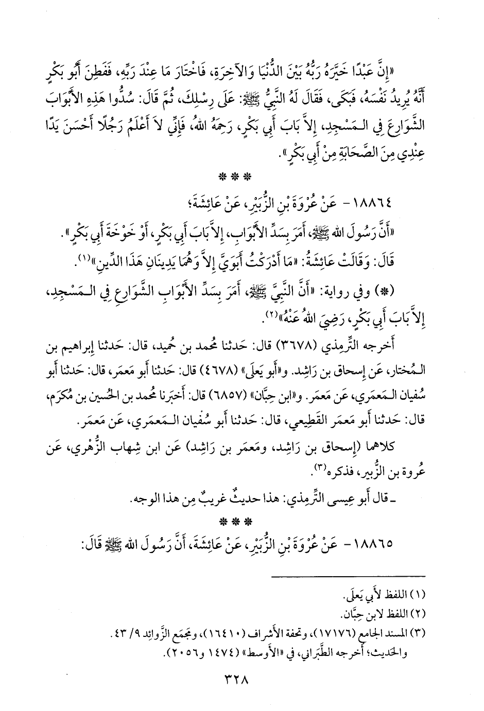 (¬٣) المسند الجامع (١٧١٧٦)، وتحفة الأشراف (١٦٤١٠)، ومَجمَع الزوائد ٩/ ٤٣.