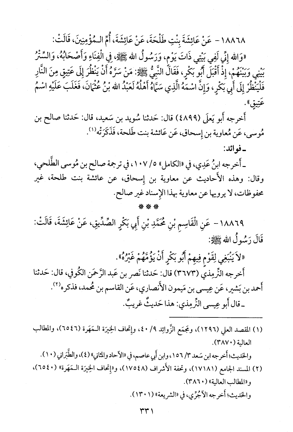 (¬١) المقصد العَلي (١٢٩٦)، ومَجمَع الزوائد ٩/ ٤٠، وإتحاف الخِيرَة المَهَرة (٦٥٤٦)، والمطالب العالية (٣٨٧٠).