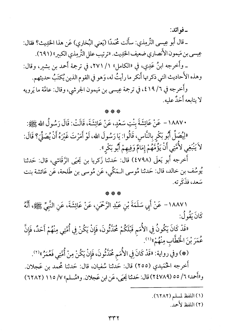 «قد كان يكون في الأمم قبلكم محدثون، فإن يكن في أمتي منهم أحد، فإن عمر بن الخطاب منهم» (¬١).