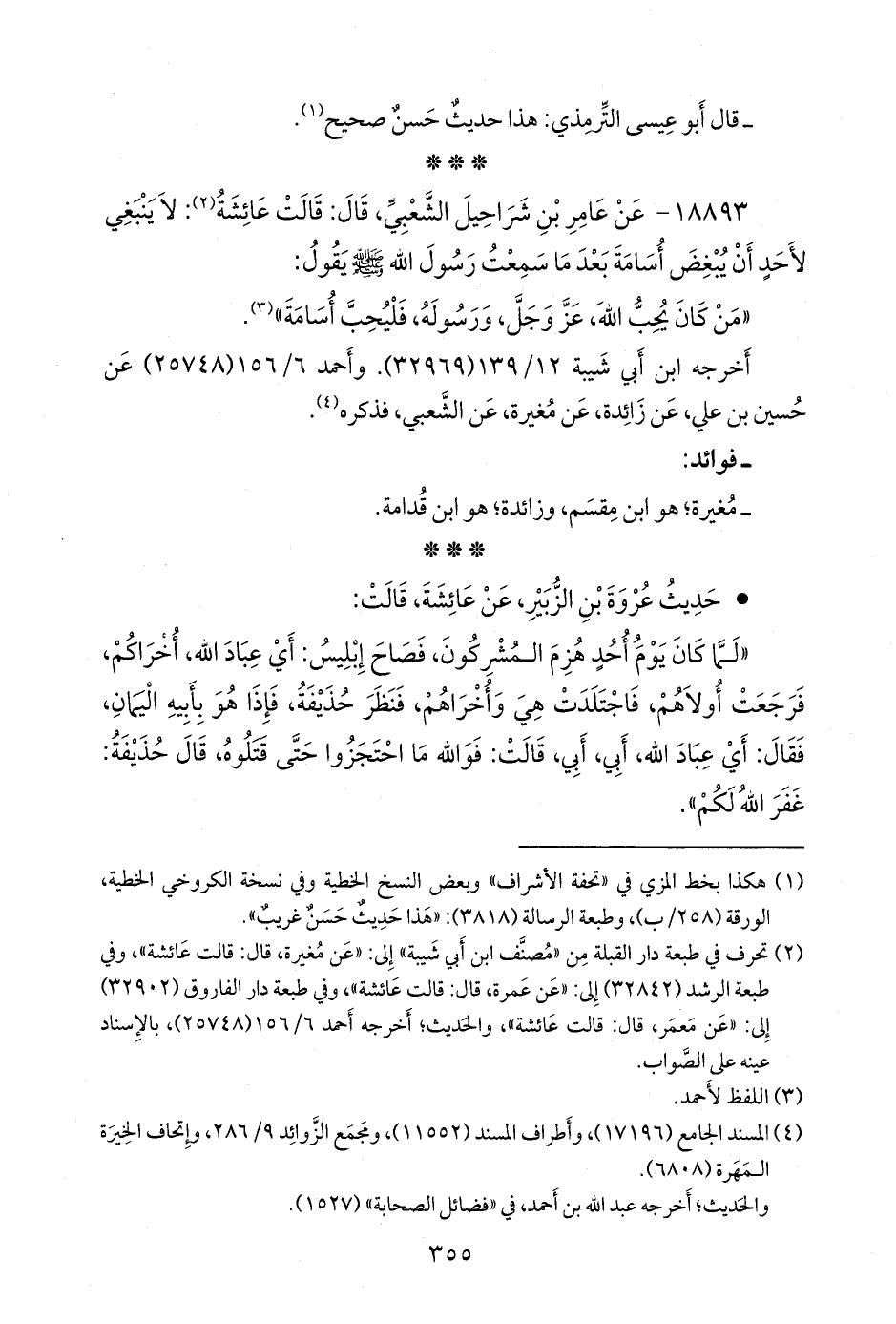 ١٨٨٩٣ - عن عامر بن شراحيل الشعبي، قال: قالت عائشة (¬١): لا ينبغي لأحد أن يبغض أسامة بعد ما سمعت رسول الله صَلى الله عَليه وسَلم يقول: