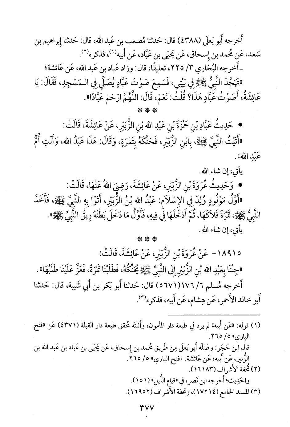 • حديث عباد بن حمزة بن عبد الله بن الزبير، عن عائشة، قالت: