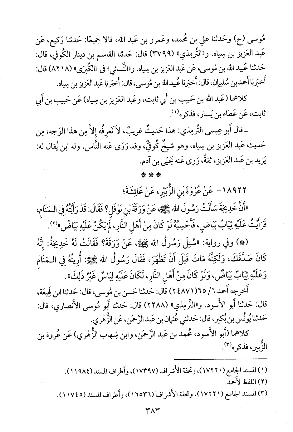(¬٢) المسند الجامع (١٧٢٢١)، وتحفة الأشراف (١٦٥٣٦)، وأطراف المسند (١١٧٤٥).