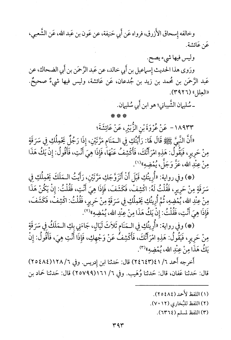 ١٨٩٣٣ - عن عروة بن الزبير، عن عائشة؛