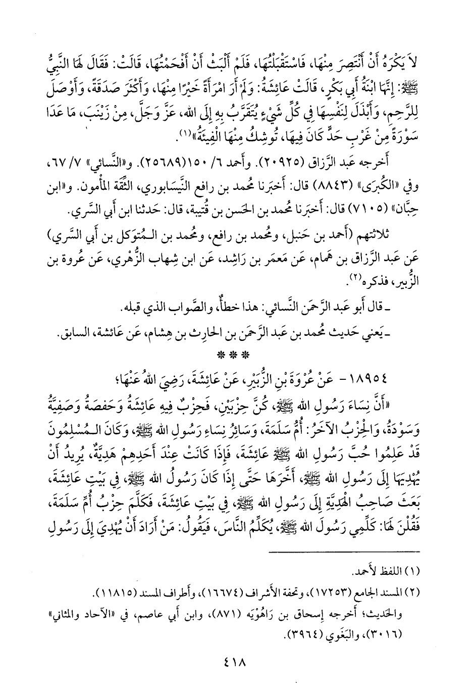 ١٨٩٥٤ - عن عروة بن الزبير، عن عائشة، رضي الله عنها؛
