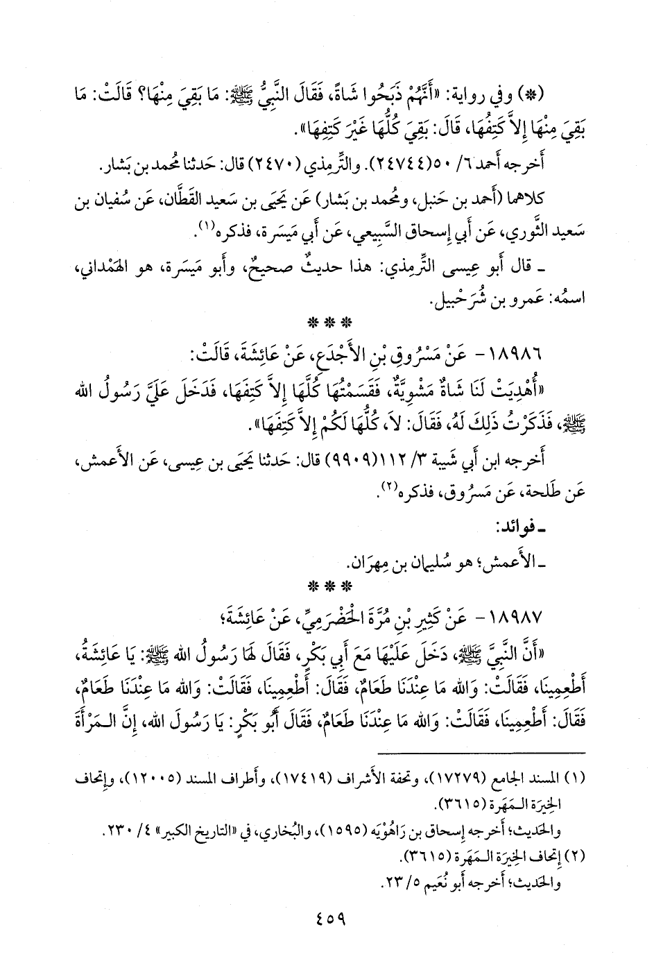 ١٨٩٨٦ - عن مسروق بن الأجدع، عن عائشة، قالت:
