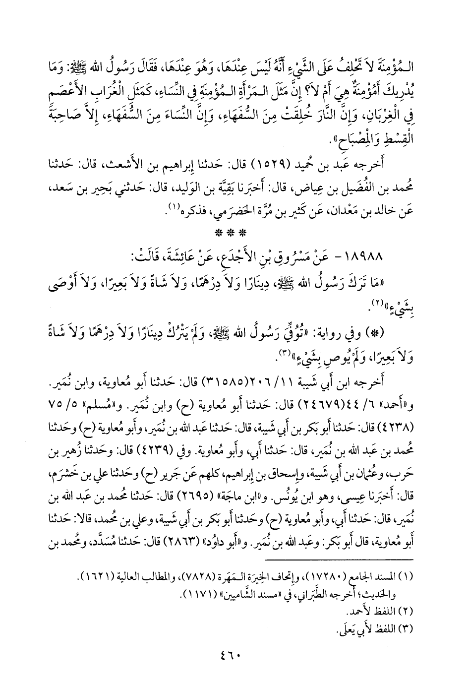 العلاء, قالا: حدثنا أَبو معاوية. و «النَّسَائي» ٦/ ٢٤٠ قال: أخبرنا محمد بن رافع, قال: حدثنا يحيى بن آدم, قال: حدثنا مفضل (ح) وأنبأنا محمد بن العلاء، وأحمد بن حرب، قالا: حدثنا أَبو معاوية. وفي ٦/ ٢٤٠, وفي «الكبرى» (٦٤١٦) قال: أخبرني محمد بن رافع, قال: حدثنا مصعب, قال: حدثنا داود. وفي «الكبرى» (٦٤١٥) قال: أخبرنا هَنَّاد بن السَّري، ومحمد بن العلاء، وأخبرنا أحمد بن حرب, قالوا: حدثنا أَبو معاوية (ح) وأخبرنا محمد بن رافع, قال: حدثنا يحيى بن آدم, قال: حدثنا مفضل. و «أَبو يَعلى» (٤٥٤٢) قال: حدثنا إسحاق، قال: حدثنا جَرير.