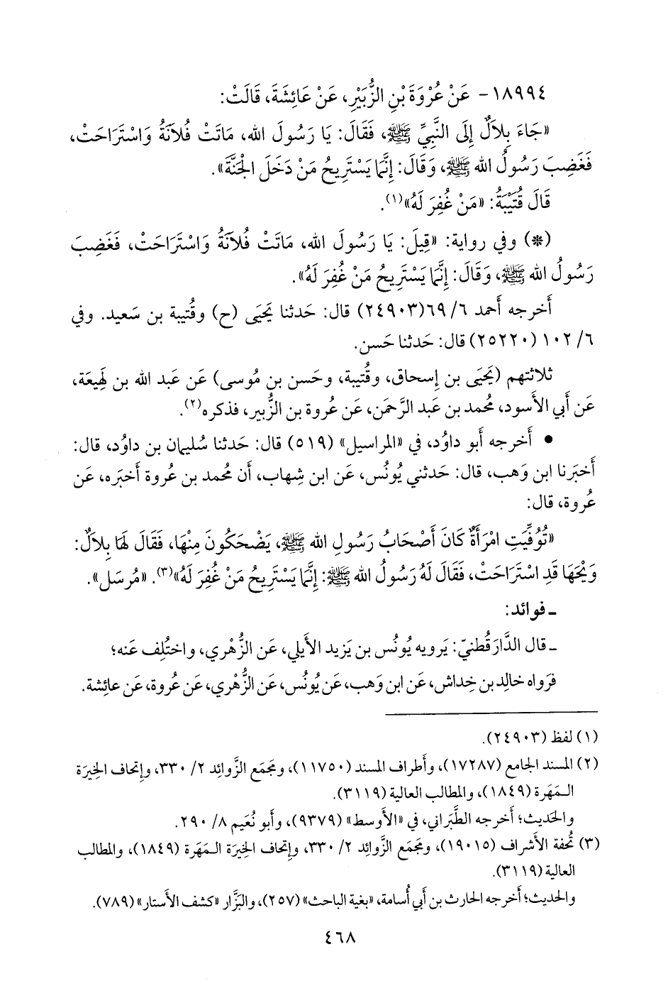 ثلاثتهم (يحيى بن إسحاق، وقتيبة، وحسن بن موسى) عن عبد الله بن لَهِيعة، عن أبي الأسود، محمد بن عبد الرَّحمَن، عن عروة بن الزبير، فذكره (¬٢).
