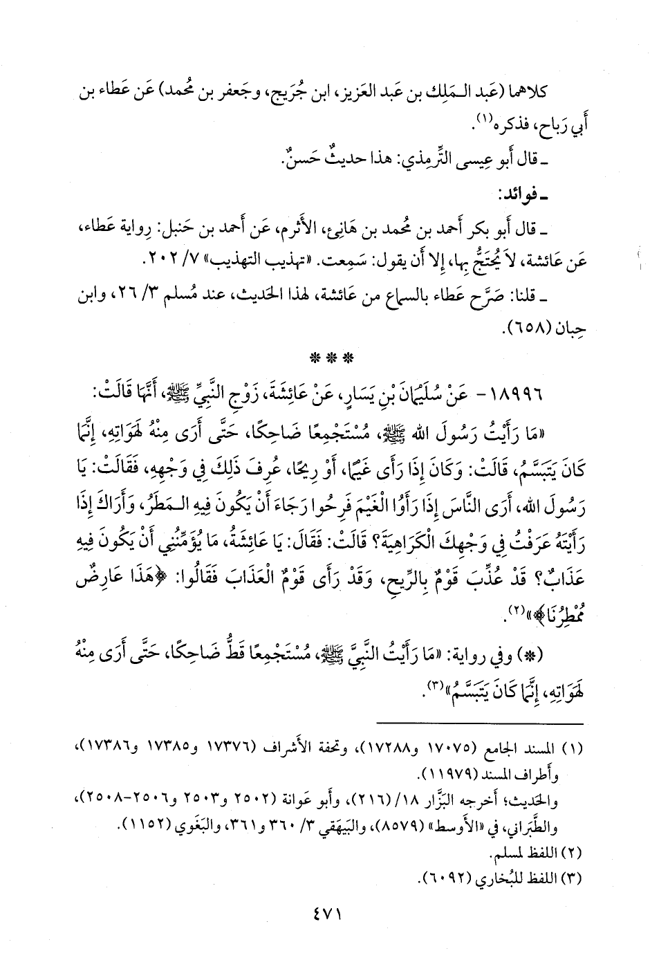 ١٨٩٩٦ - عن سليمان بن يسار، عن عائشة، زوج النبي صَلى الله عَليه وسَلم أنها قالت: