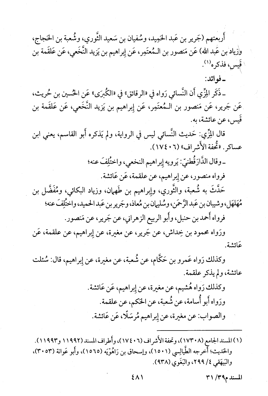 فرواه أحمد بن حنبل، وأَبو الربيع الزهراني، عن جرير، عن منصور.