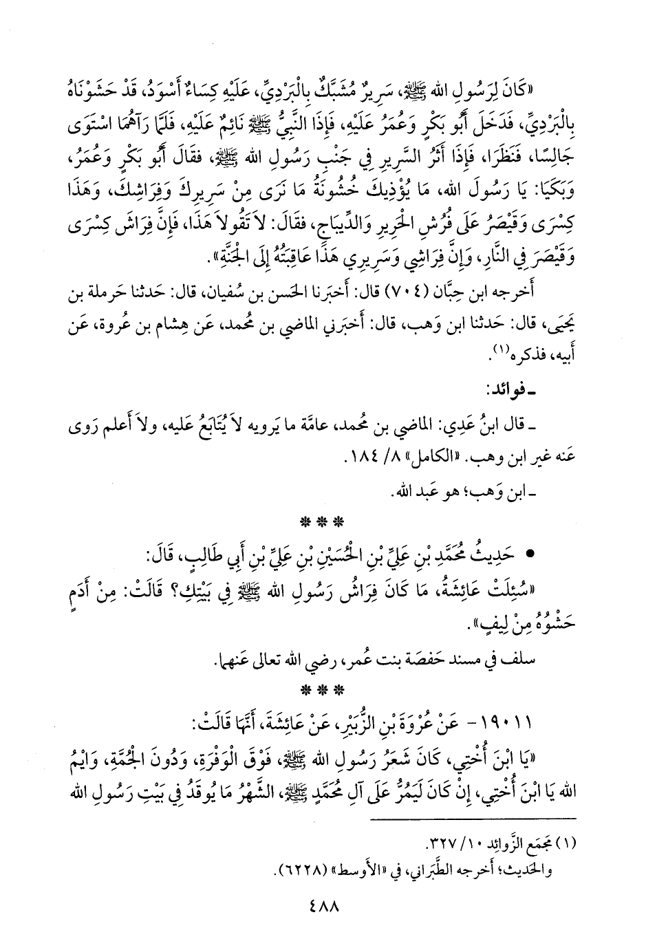 ١٩٠١١ - عن عروة بن الزبير، عن عائشة، أنها قالت: