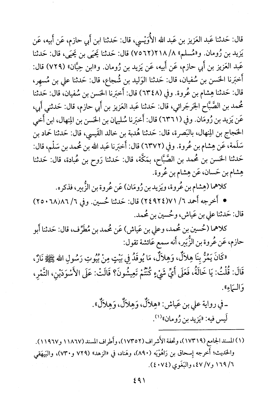 كلاهما (هشام بن عروة، ويزيد بن رومان) عن عروة بن الزبير، فذكره.