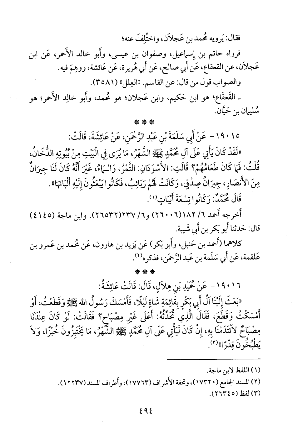 ١٩٠١٥ - عن أبي سلمة بن عبد الرَّحمَن، عن عائشة، قالت: