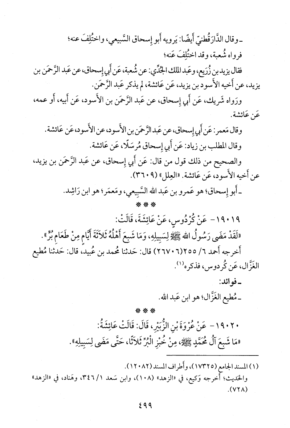 ١٩٠٢٠ - عن عروة بن الزبير، قال: قالت عائشة: