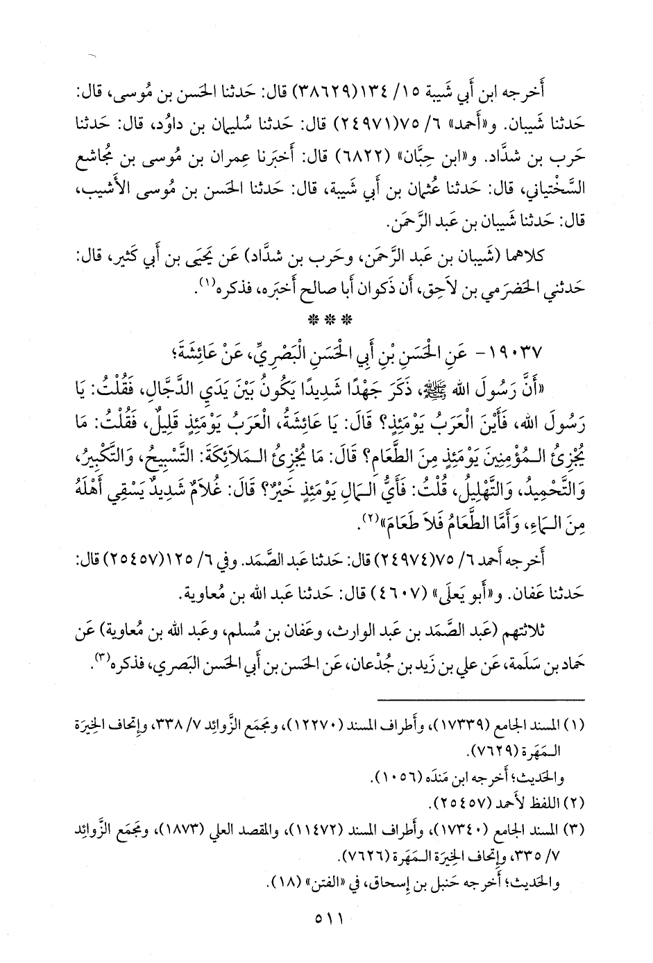 ١٩٠٣٧ - عن الحسن بن أبي الحسن البصري، عن عائشة؛