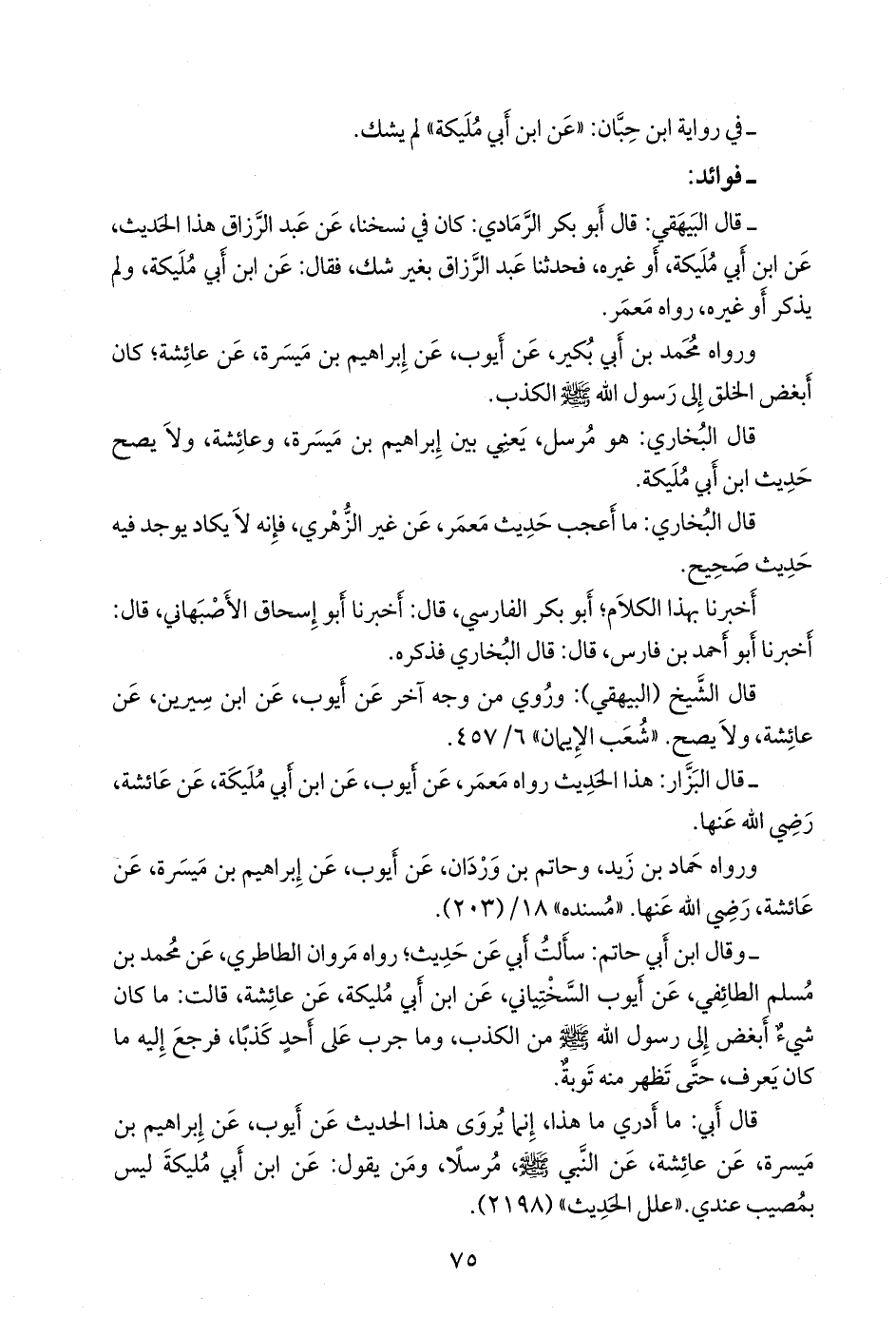 - قال البيهقي: قال أَبو بكر الرمادي: كان في نسخنا، عن عبد الرزاق هذا الحديث، عن ابن أَبي مُليكة، أو غيره، فحدثنا عبد الرزاق بغير شك، فقال: عن ابن أَبي مُليكة، ولم يذكر أو غيره.