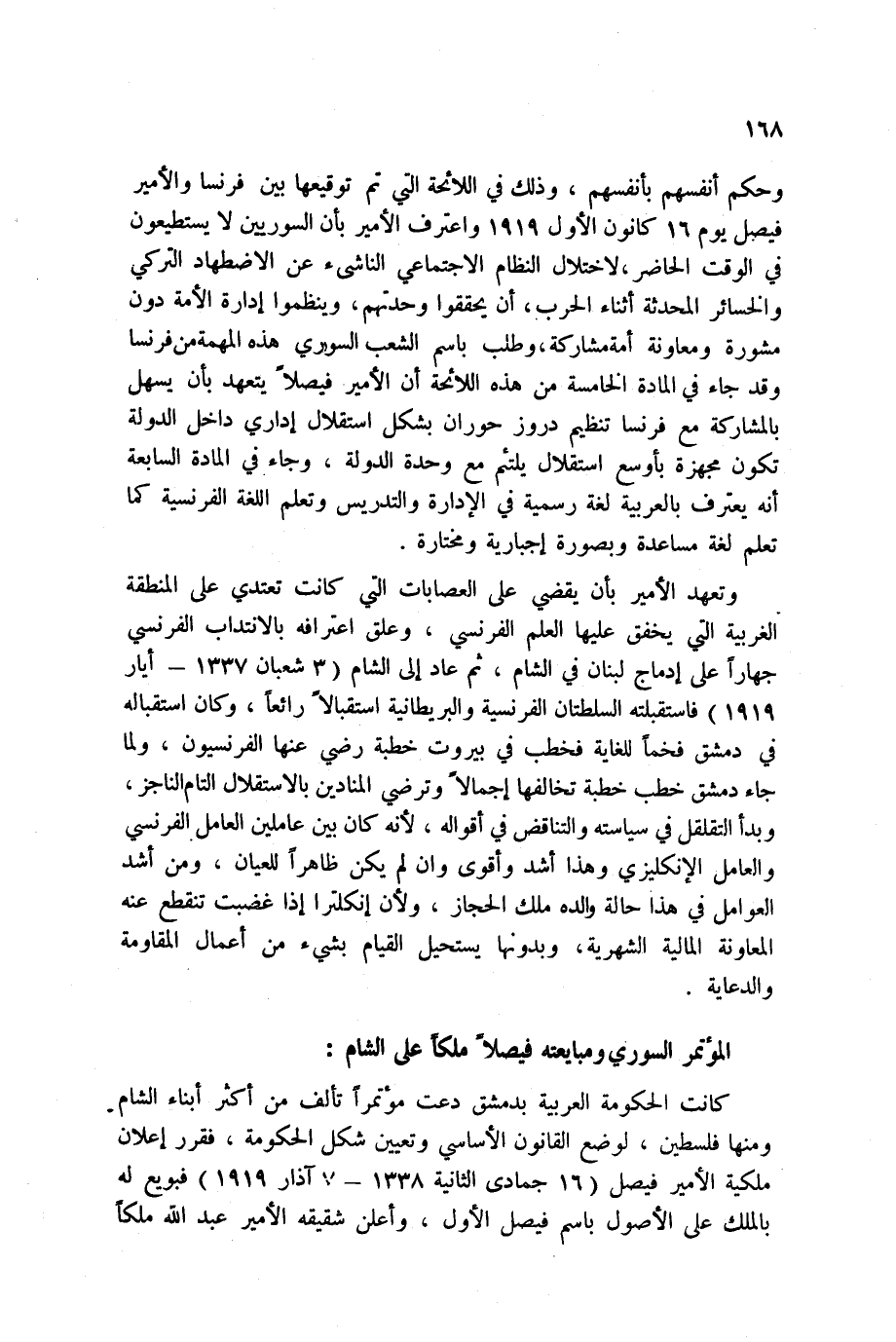 وحكم أنفسهم بأنفسهم، وذلك في اللائحة التي تم توقيعها بين فرنسا والأمير فيصل يوم 16 كانون الأول 1919 واعترف الأمير بأن السوريين لا يستطيعون في الوقت