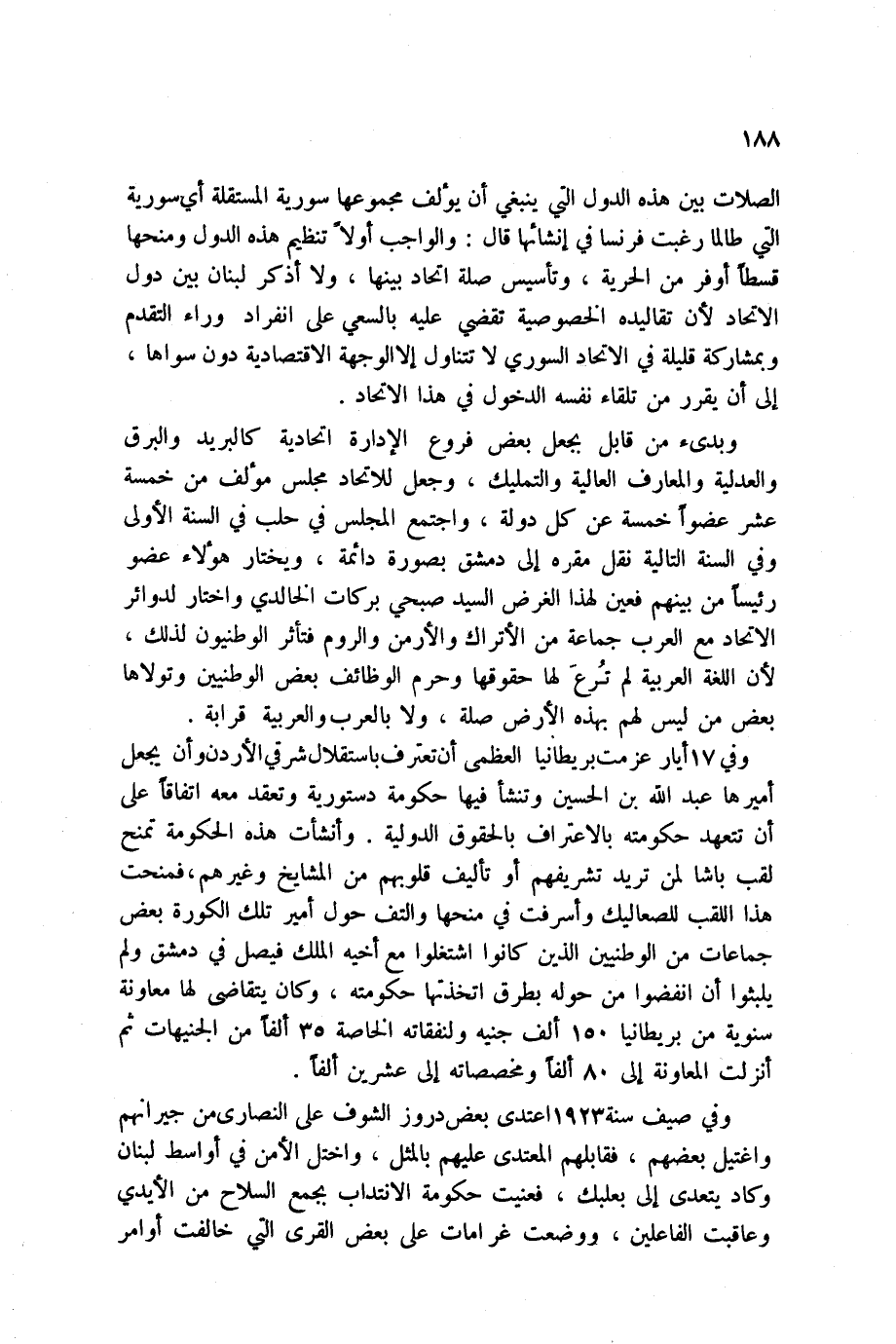 الصلات بين هذه الدول التي ينبغي أن يؤلف مجموعها سورية المستقلة أي سورية التي طالما رغبت فرنسا في إنشائها قال: والواجب أولاً تنظيم هذه الدول ومنحها قسطاً أوفر من الحرية، وتأسيس صلة اتحاد بينها، ولا أذكر لبنان بين دول الاتحاد لأن تقاليده الخصوصية تقضي عليه بالسعي على انفراد وراء التقدم وبمشاركة قليلة في الاتحاد السوري لا تتناول إلا الوجهة الاقتصادية دون سواها، إلى أن يقرر من تلقاء نفسه الدخول في هذا الاتحاد.