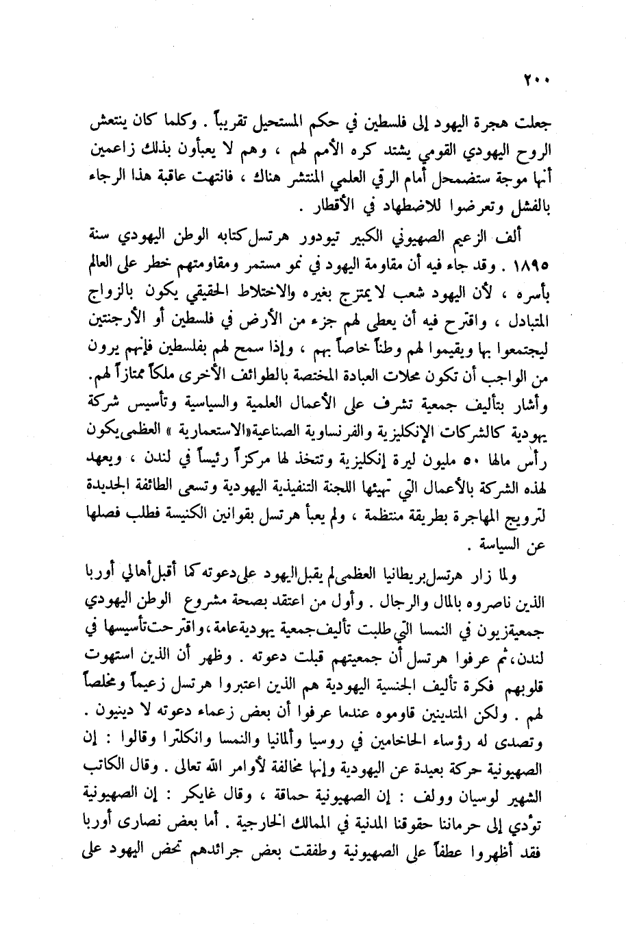 جعلت هجرة اليهود إلى فلسطين في حكم المستحيل تقريباً. وكلما كان ينتعش الروح اليهودي القومي يشتد كره الأمم لهم، وهم لا يعبئون بذلك زاعمين أنها موجة ستضمحل أمام الرقي العلمي المنتشر هناك، فانتهت عاقبة هذا الرجاء بالفشل وتعرضوا للاضطهاد في الأقطار.