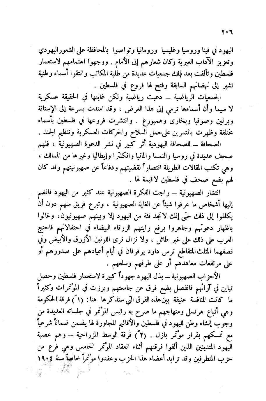 الأحزاب الصهيونية: بذل اليهود جهوداً كبيرة لاستعمار فلسطين وحصل تباين في آرائهم فانفصل بضع فرق عن جامعتهم وبرزت في المؤتمرات وكثيراً ما كانت المنافسة عنيفة بين هذه الفرق التي سنذكرها هنا: