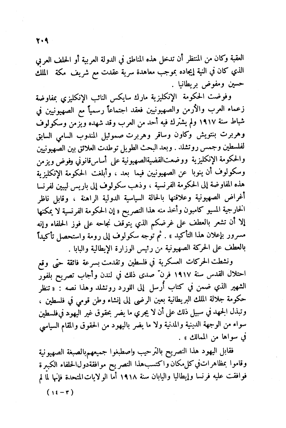 وفوضت الحكومة الإنكليزية مارك سايكس النائب الإنكليزي بمفاوضة زعماء العرب والأرمن والصهيونيين فعقد اجتماعاً رسمياً مع الصهيونيين في شباط سنة 1917 ولم يشترك فيه أحد من العرب وقد شهده ويزمن وسكولوف وهربرت بنتويش وكاون وساقر وهربرت صموئيل المندوب السامي السابق لفلسطين وجمس روتشلد. وبعد البحث الطويل توطدت العلائق بين الصهيونيين والحكومة الإنكليزية ووضعت القضية الصهيونية على أساس قانوني وفوض ويزمن وسكولوف أن ينوبا عن الصهيونيين فيما بعد، وأبلغت الحكومة الإنكليزية هذه المفاوضة إلى الحكومة الفرنسية، وذهب سكولوف إلى باريس ليبين لفرنسا أغراض الصهيونية وعلاقتها بالحالة السياسية الدولية الراهنة، وقابل ناظر الخارجية المسيو كامبون وأخذ منه هذا التصريح إن الحكومة الفرنسية لا يمكنها إلا أن تشعر بالعطف على غرضكم الذي يتوقف نجاحه على فوز الحلفاء وإنه